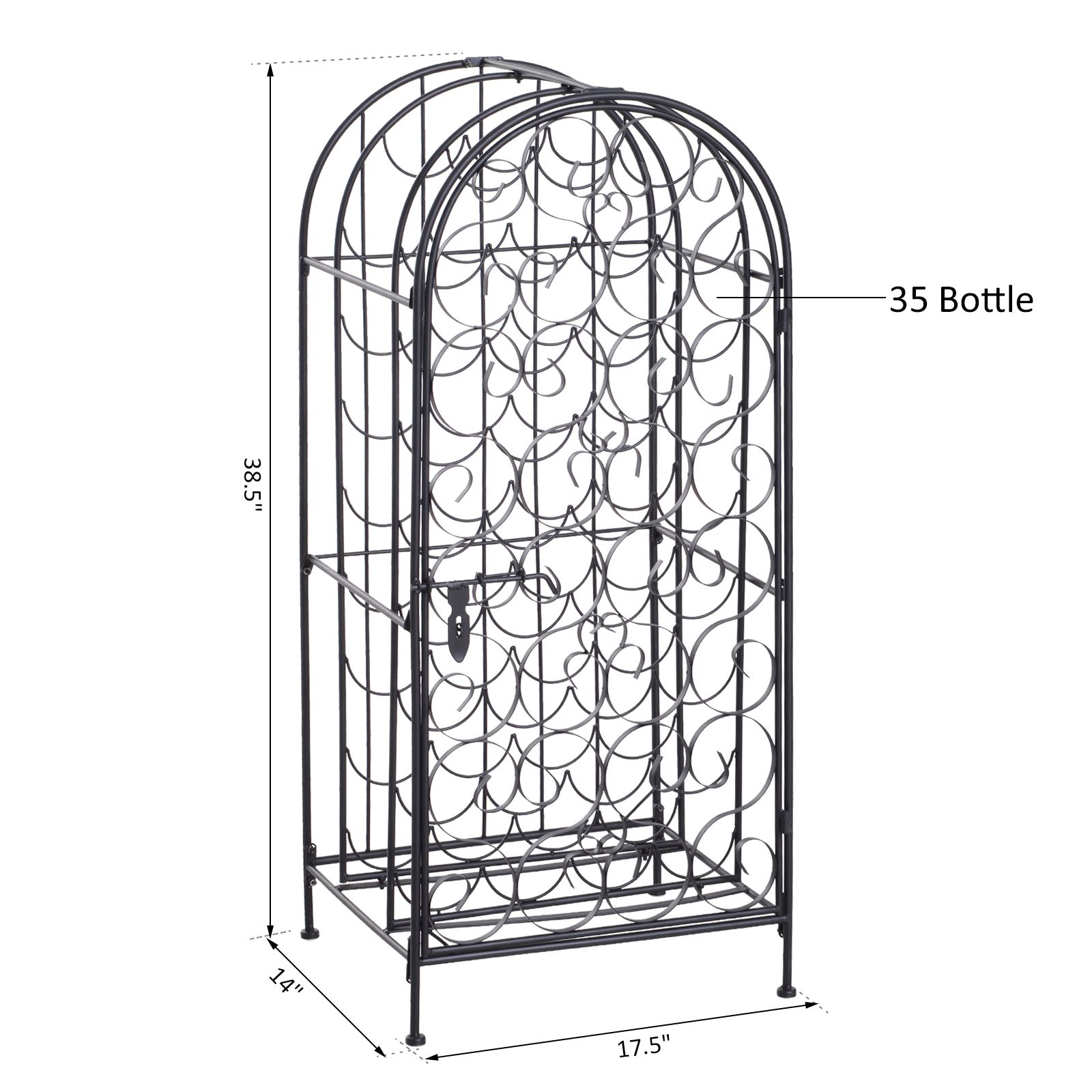 HOMCOM 35 Bottle Wrought Iron Wine Rack Cabinet with Lock, Black HOMCOM 35 Bottle Wrought Iron Wine Rack Cabinet with Lock, Black HOMCOM 35 Bottle Wrought Iron Wine Rack Cabinet with Lock, Black