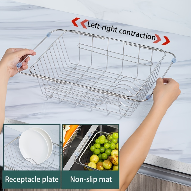1pc Drain Rack; Drain Basket; Stainless Steel Kitchen Basket; Home Utensil Holder; Sink Basket; Retractable Sink Rack Suitable For Rectangular Sink Bo