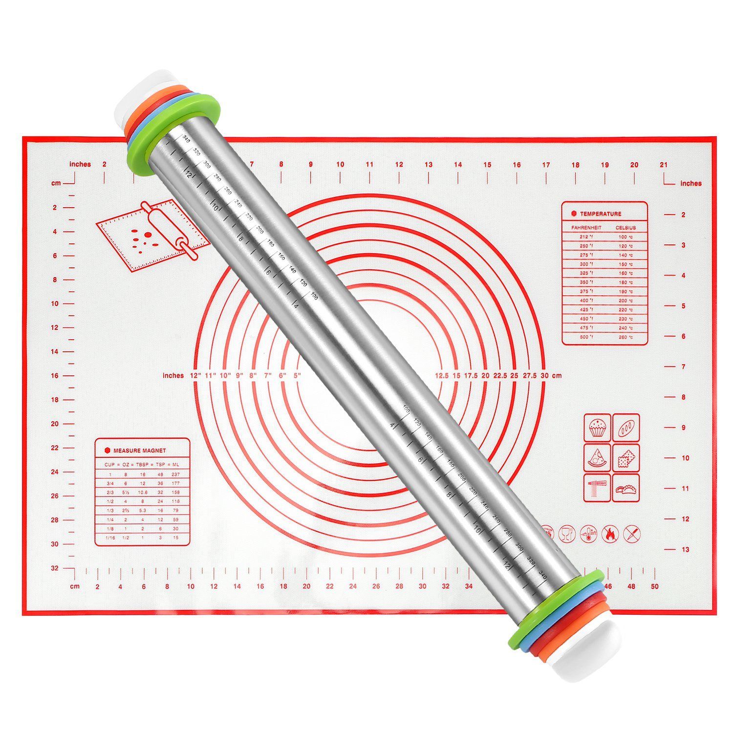 Dough Rolling Pin Dough Roller Stainless Steel Rolling Pins with 4 Removable Adjustable Thickness Rings and Rolling Mat Dough Rolling Pin Dough Roller Stainless Steel Rolling Pins with 4 Removable Adjustable Thickness Rings and Rolling Mat Dough Rolling Pin Dough Roller Stainless Steel Rolling Pins with 4 Removable Adjustable Thickness Rings and Rolling Mat