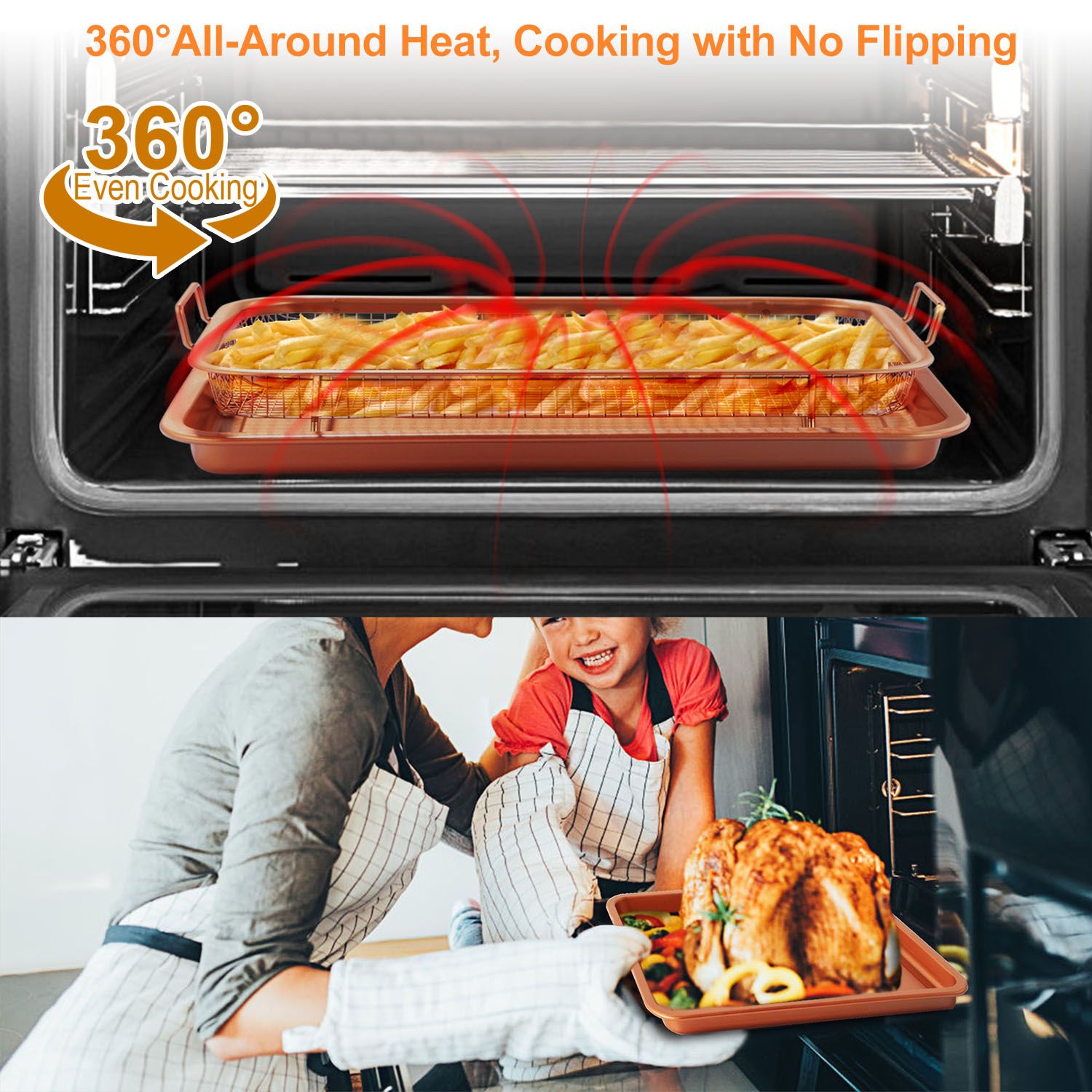 *Oven Safe and Dishwasher Safe*:Our crisper tray set can be used to stir-fry,deep-fry,roast and meantime bake in the oven(170℃). And featuring dishwasher safe,you can clean the both parts into the dish washer or wipe them with cloth.